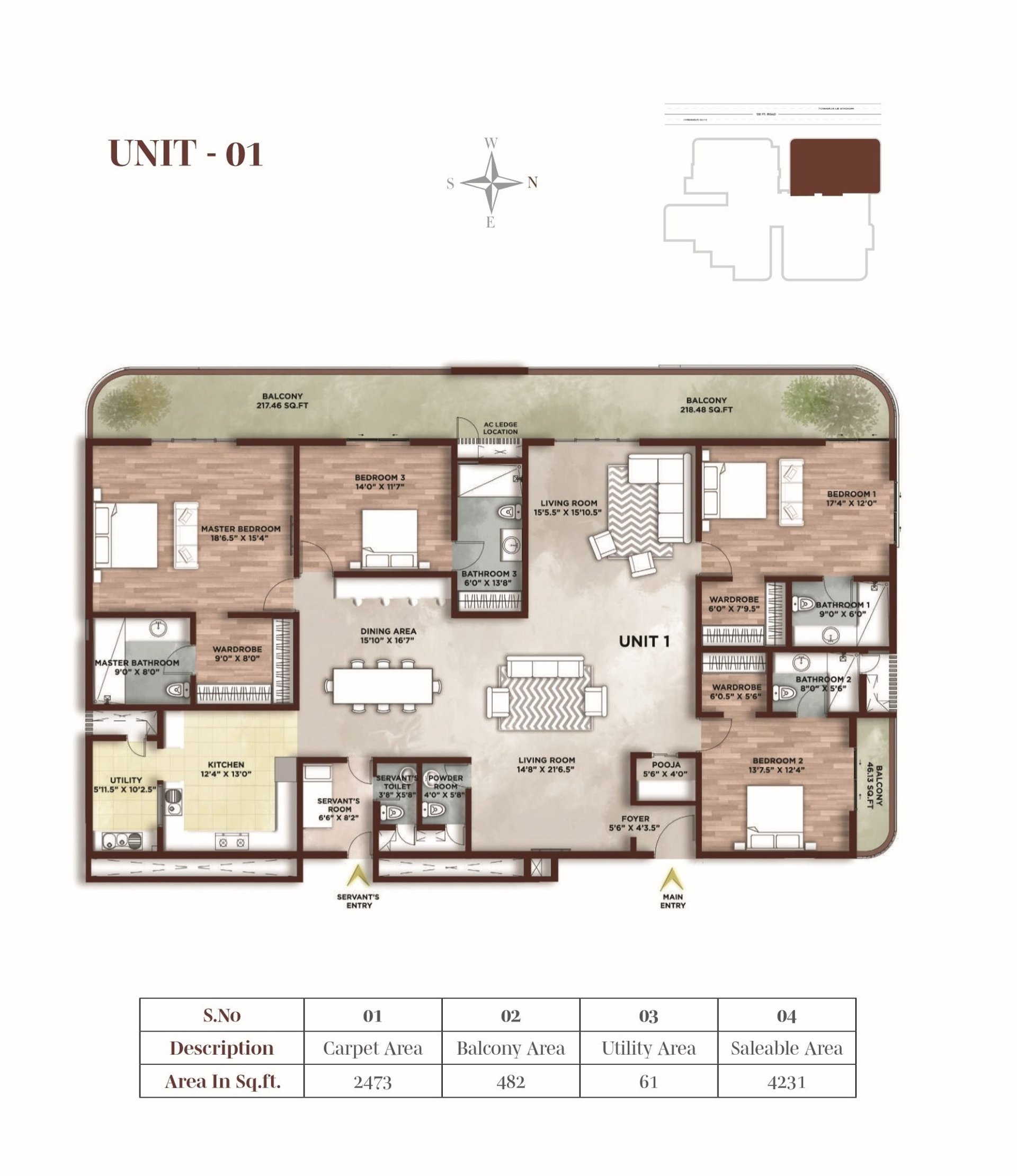 4 BHK: Size: 4,231 sq.ft | West Facing | Unit 1