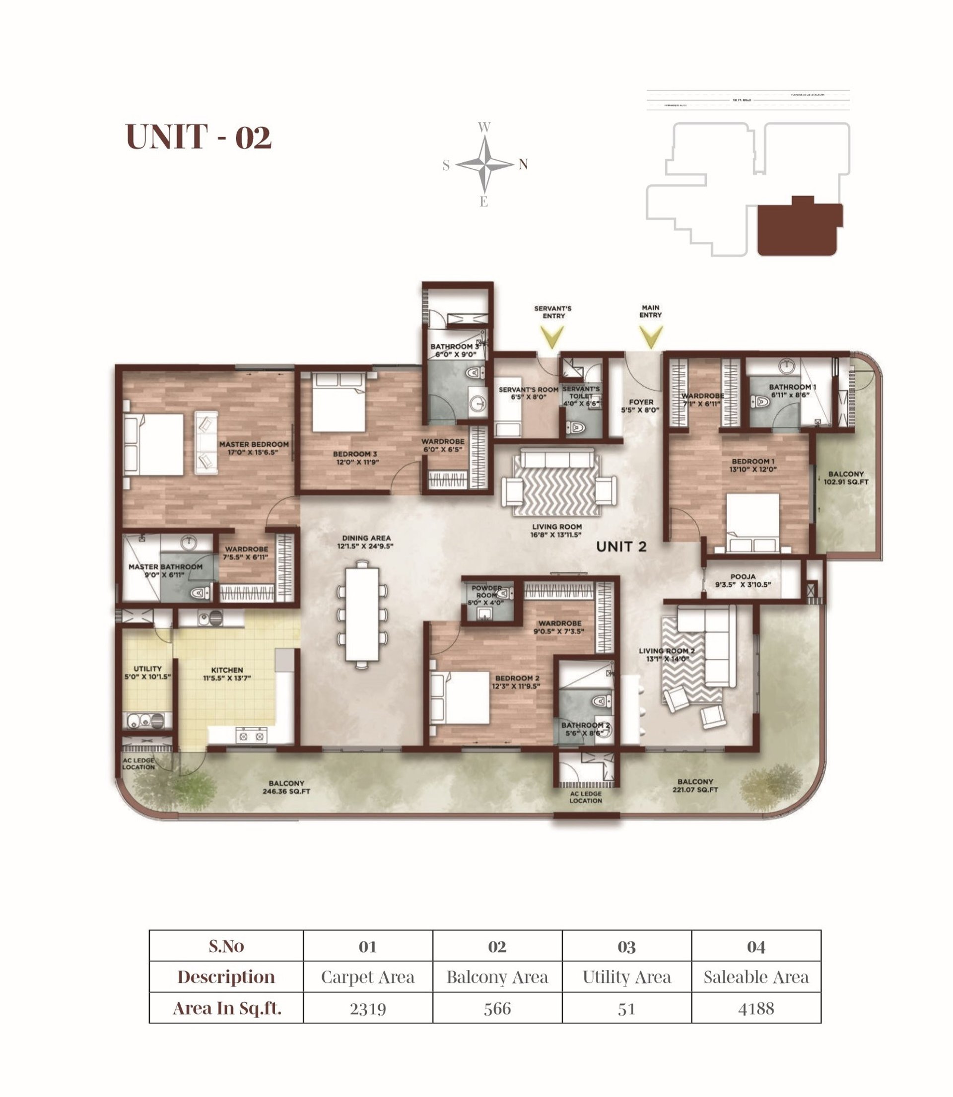 4 BHK: Size: 4,188 sq.ft | East Facing | Unit 2