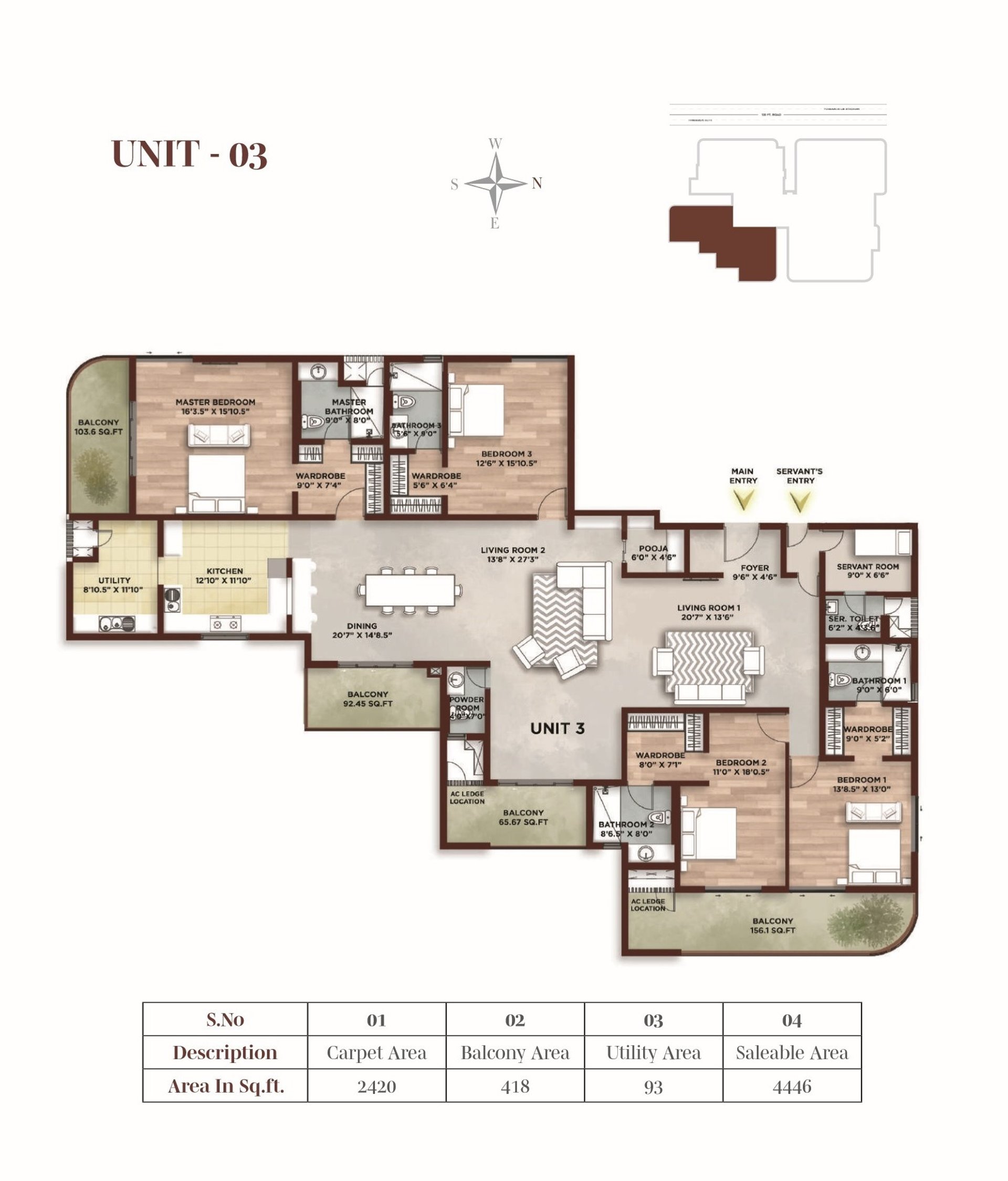4 BHK: Size: 4,446 sq.ft | East Facing | Unit 3