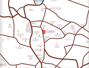 Elysia by Meenakshi rests at the center of Abids making it extremely well-connected to the city while providing a generously spread out, uber-luxurious and ultra-modern residence in the heart of one Hyderabad’s oldest and grandest address.